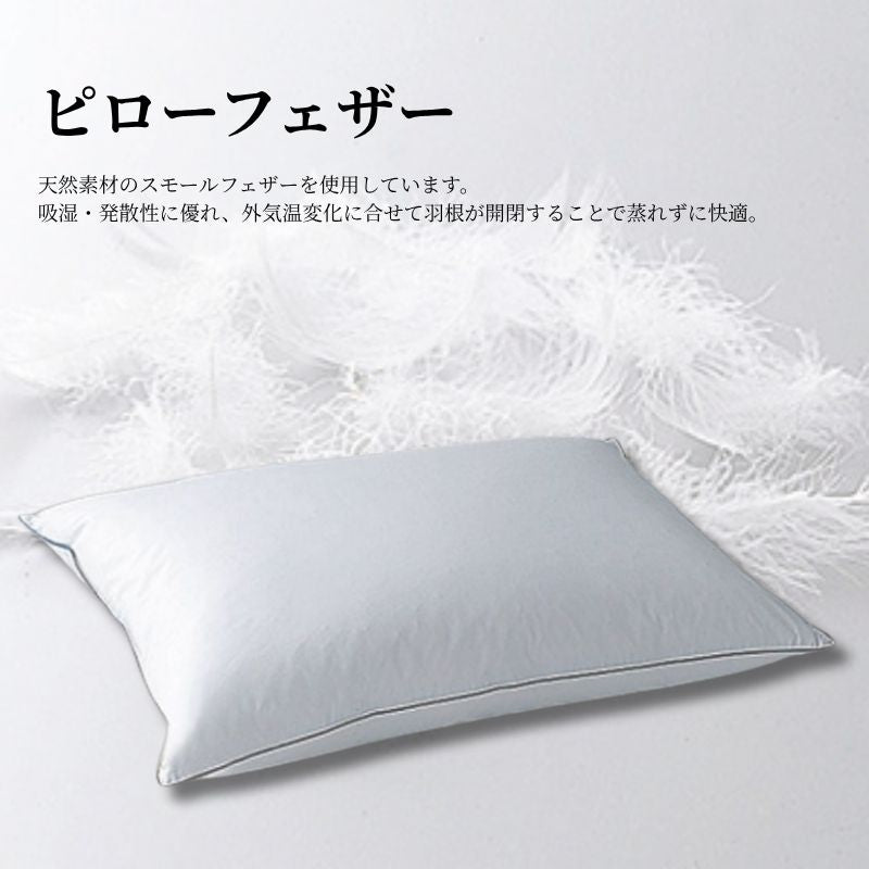 ◆ピローフェザー 表布地:綿100%(抗菌・防臭加工) 詰物:スモールフェザー1.2kg ◆シエルプレーン(ピローケース) 【家庭洗濯可能:製品の洗濯表示をご確認ください】